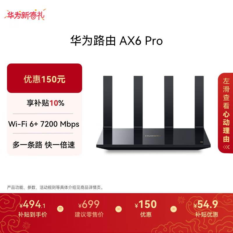 华为路由 AX6 Pro【 华为三折叠好搭档】WiFi6+ 7200Mbps 千兆无线路由器 家用全屋覆盖 wifi穿墙王